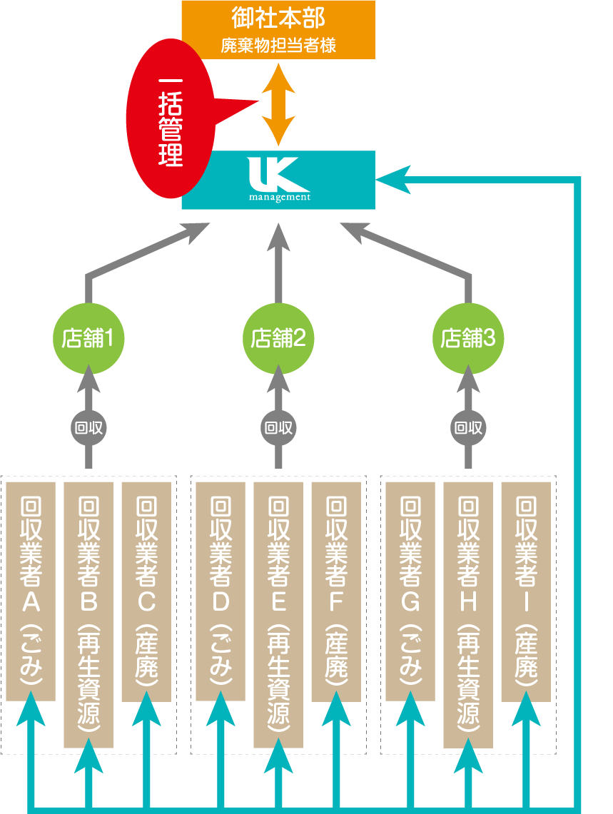 事業所ごとに異なる処理業者や市町村ごとに異なる排出方法でお悩みも多いと思います。弊社ではお客様に代わりご面倒な廃棄物の管理を行い、様々な問題の解決・ご要望に合わせたプランニングにて全力でサポートさせていただきます。